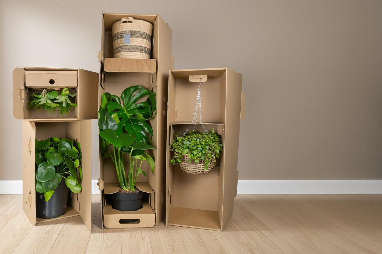 Indoor plants and flowers delivered gently to your door in proven, sustainable transport packaging.